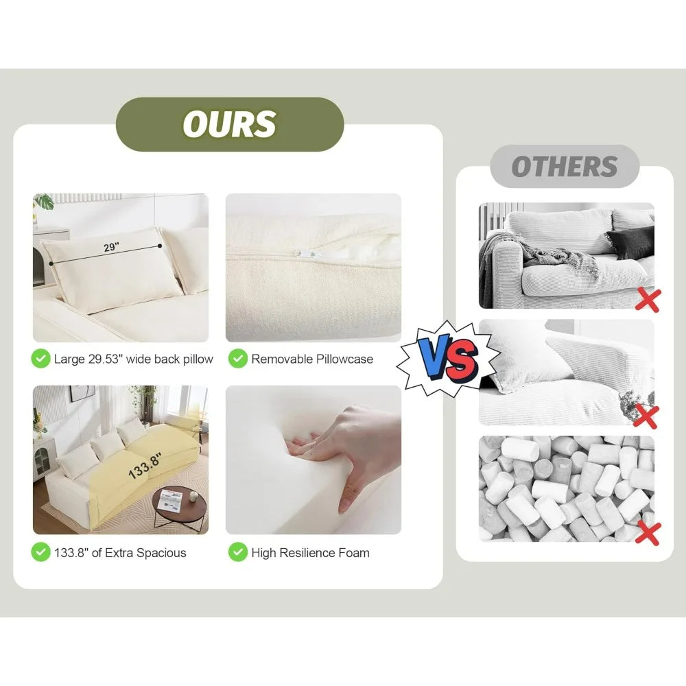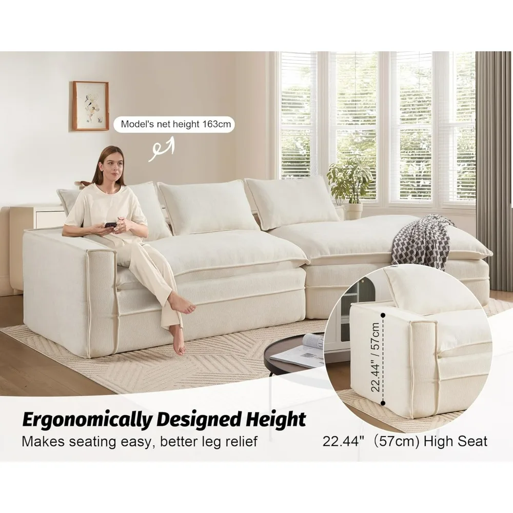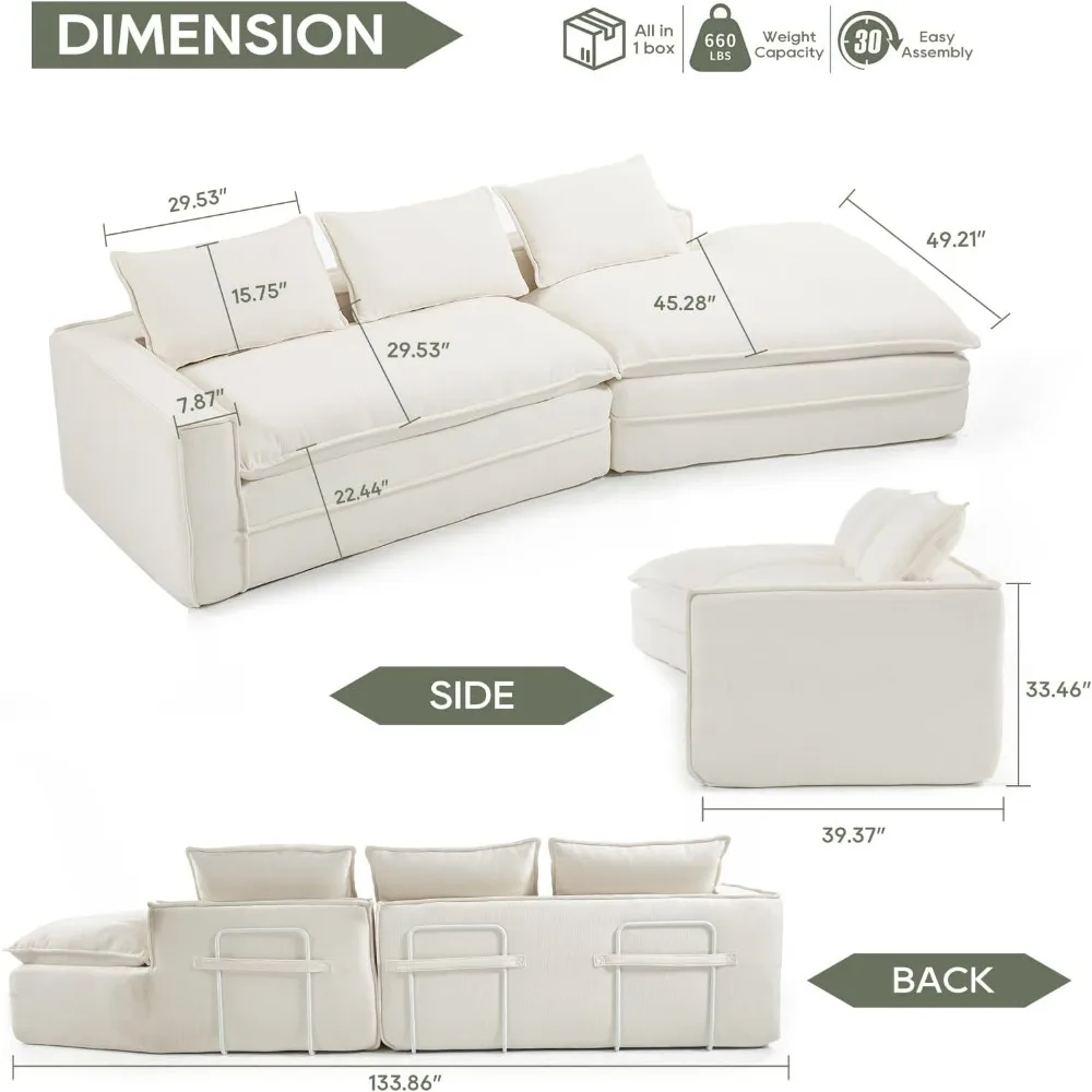 134" Fluffy Boneless Couch, Modular Deep Seat Sectional Sofa, Modern Corduroy Cloud Couch, Right Facing Chaise Sectional Couches