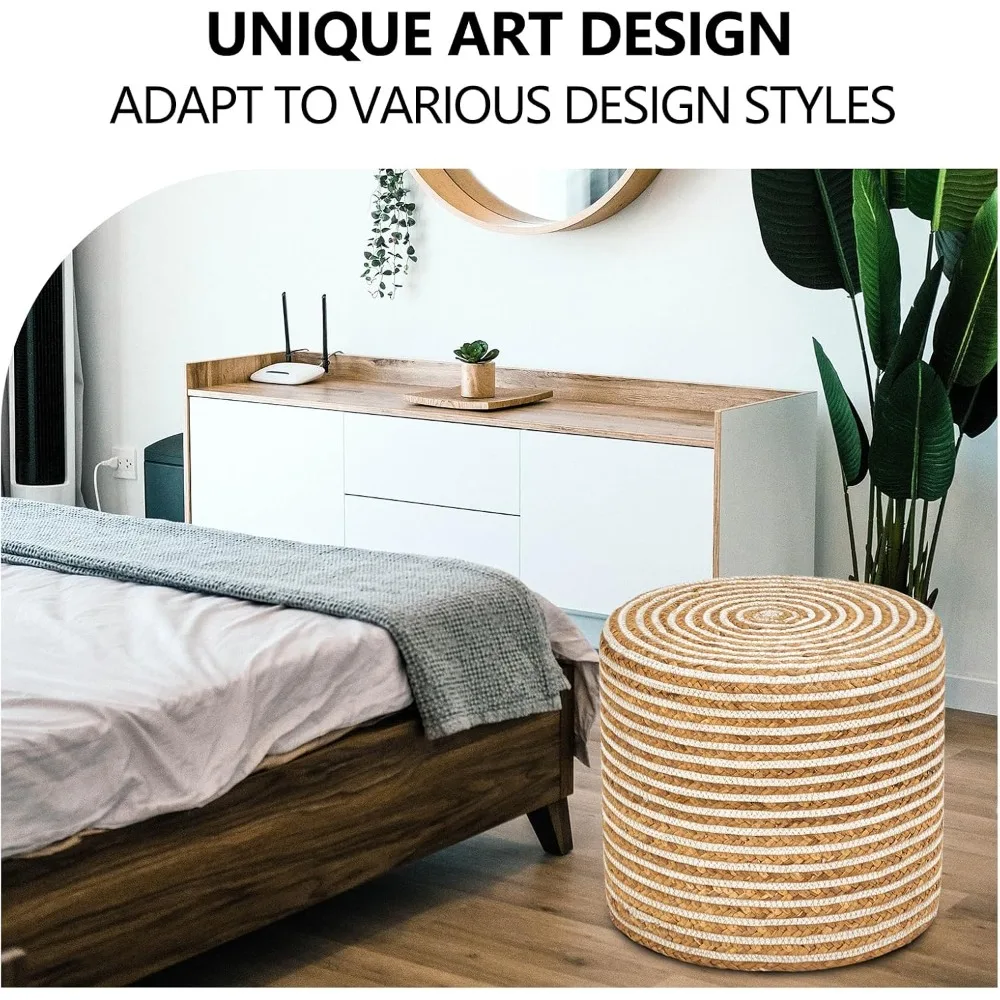 18'' Ottoman Pouf, Natural Braided Poof, Rustic Handweave Lounge Pouffe, Boho Footrest Stool for Bedroom, Accent Table