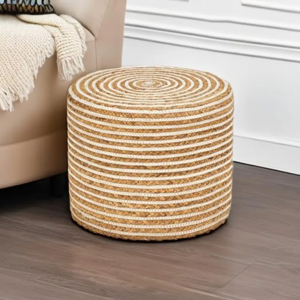 - Handmade Cover: Pouf Ottoman is made of sustainable, and durable natural water hyacinth & cotton rope. High-end sewing technology makes natural materials more tight and not easy to open