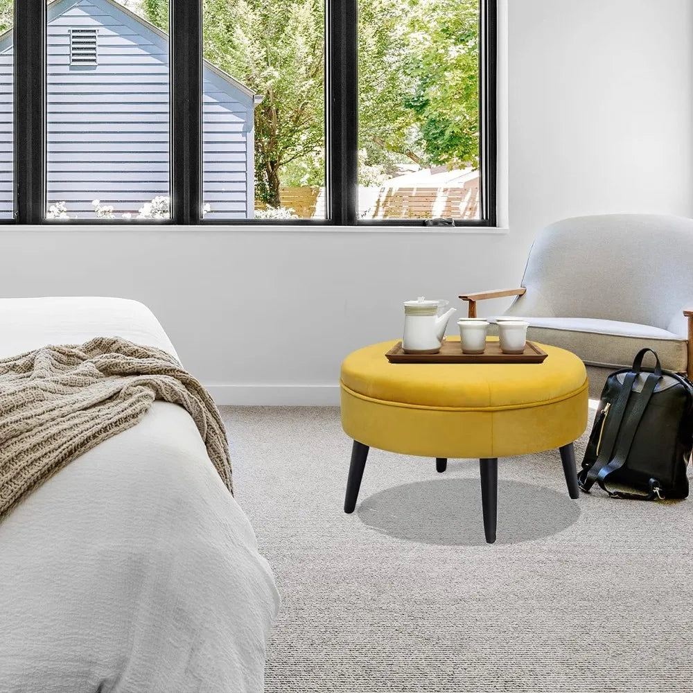 - COMFY DESIGN: Sleek round circular ottoman seat is wrapped in sumptuous velvet with cushioned upholstery for the ultimate comfort. Vibrant colors add a touch of brightness to your room