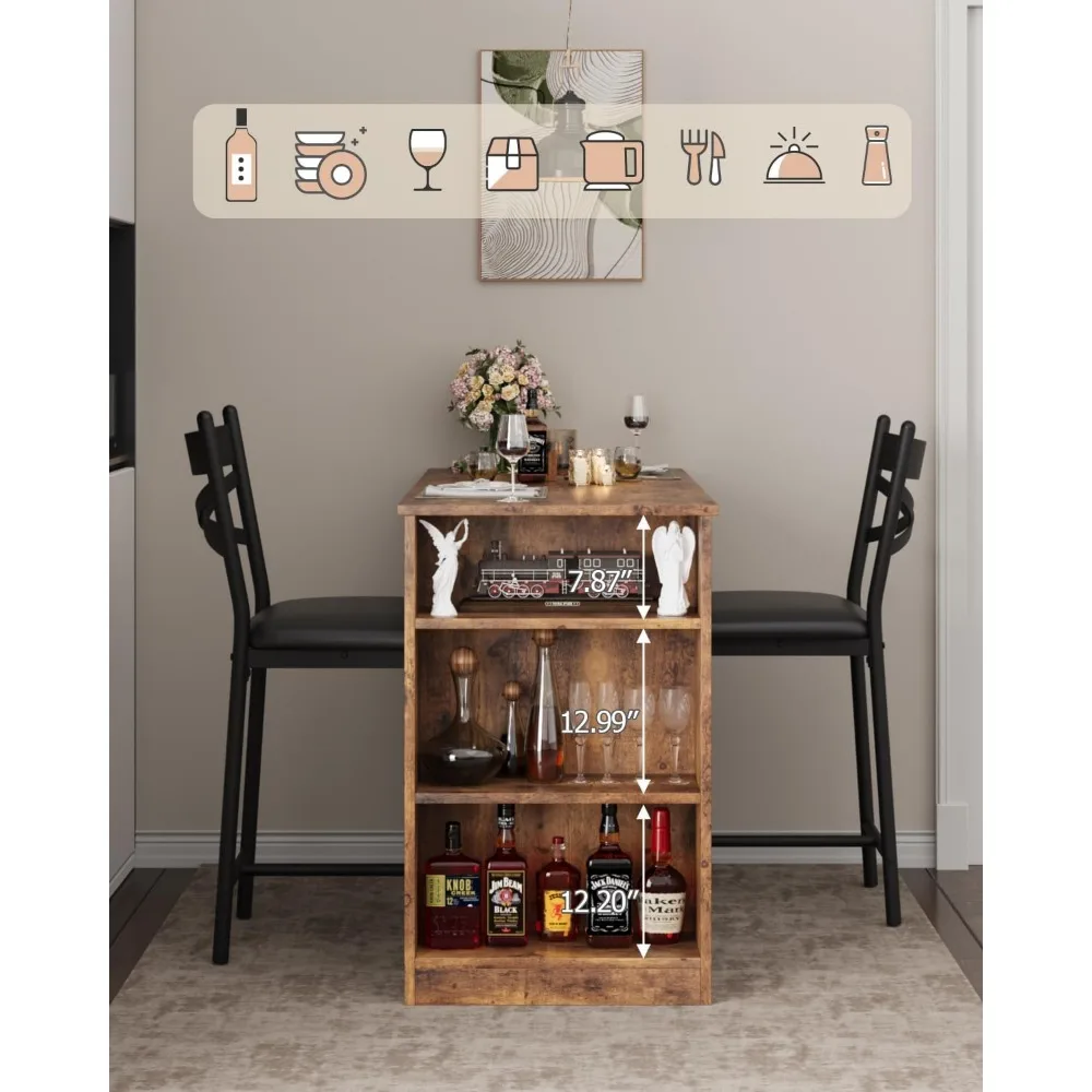 - Storage Solutions: Bar table set has 3 shelves - organize wine bottles, books, or dinnerware while maintaining industrial-chic aesthetics. Clutter-free living guaranteed.