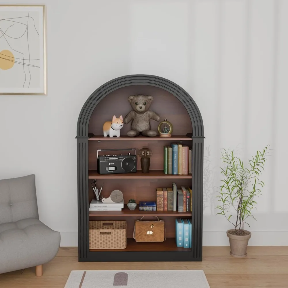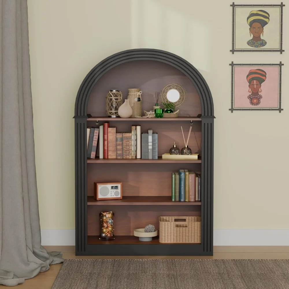 45.67" Freestanding Arched Bookcase, Modern 4-Tier Arched Bookshelf,Wooden Bookshelves for Home Office, Living Room,Black
