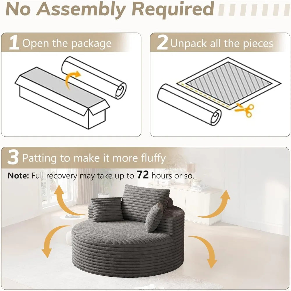 - No Assembly Required - This chaise lounge requires no additional assembly. Simply remove the protective packaging, gently tap the luxurious corduroy fabric to restore its fluffiness, and allow the high-resilience foam to naturally expand to its optimal softness (typically within 24 to 72 hours at room temperature).