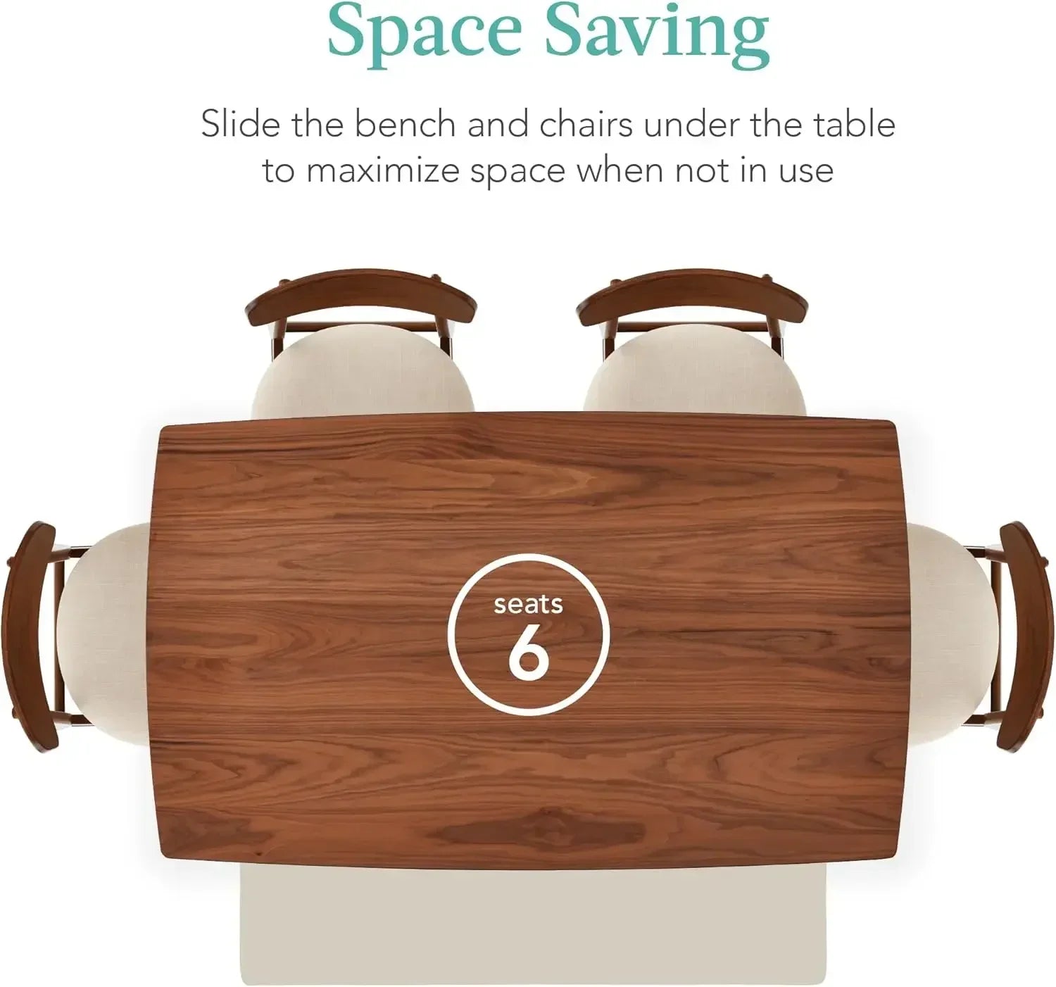 - DURABLE CONSTRUCTION: A sturdy MDF tabletop is finished with a beautiful wood grain veneer, while the striking chairs & bench are crafted from solid rubberwood with a premium upholstered seat