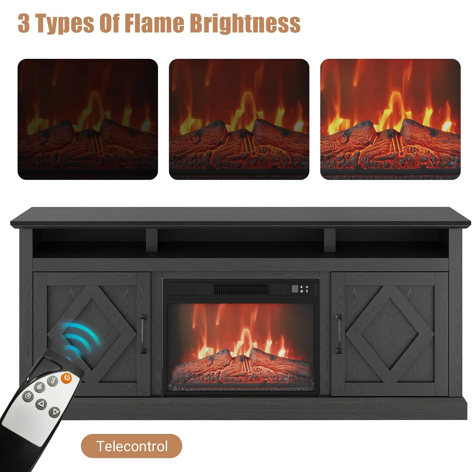🔥 ADVANCED REMOTE CONTROL OPERATION: Control all fireplace functions conveniently from your couch with the included remote. Adjust flame intensity, set desired temperature, program the timer, and toggle heating modes without leaving your seat. This TV console with fireplace combines modern convenience with classic charm, featuring overheating protection.