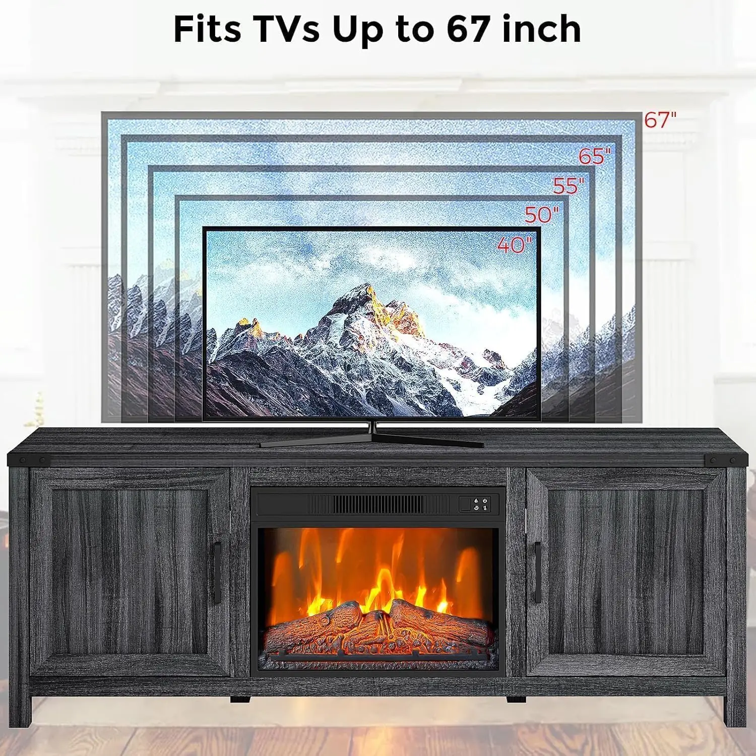 🔥 EASY ASSEMBLY & VERSATILE PLACEMENT: Designed for straightforward installation, this grayish black fireplace TV stand with adjustable shelves arrives with clear instructions and all necessary hardware. The compact 67"W x 15.8"D x 29.1"H dimensions make it ideal for apartments and larger living rooms alike. Whether you need a small grayish black fireplace TV stand or a substantial media center, this unit delivers both style and substance.