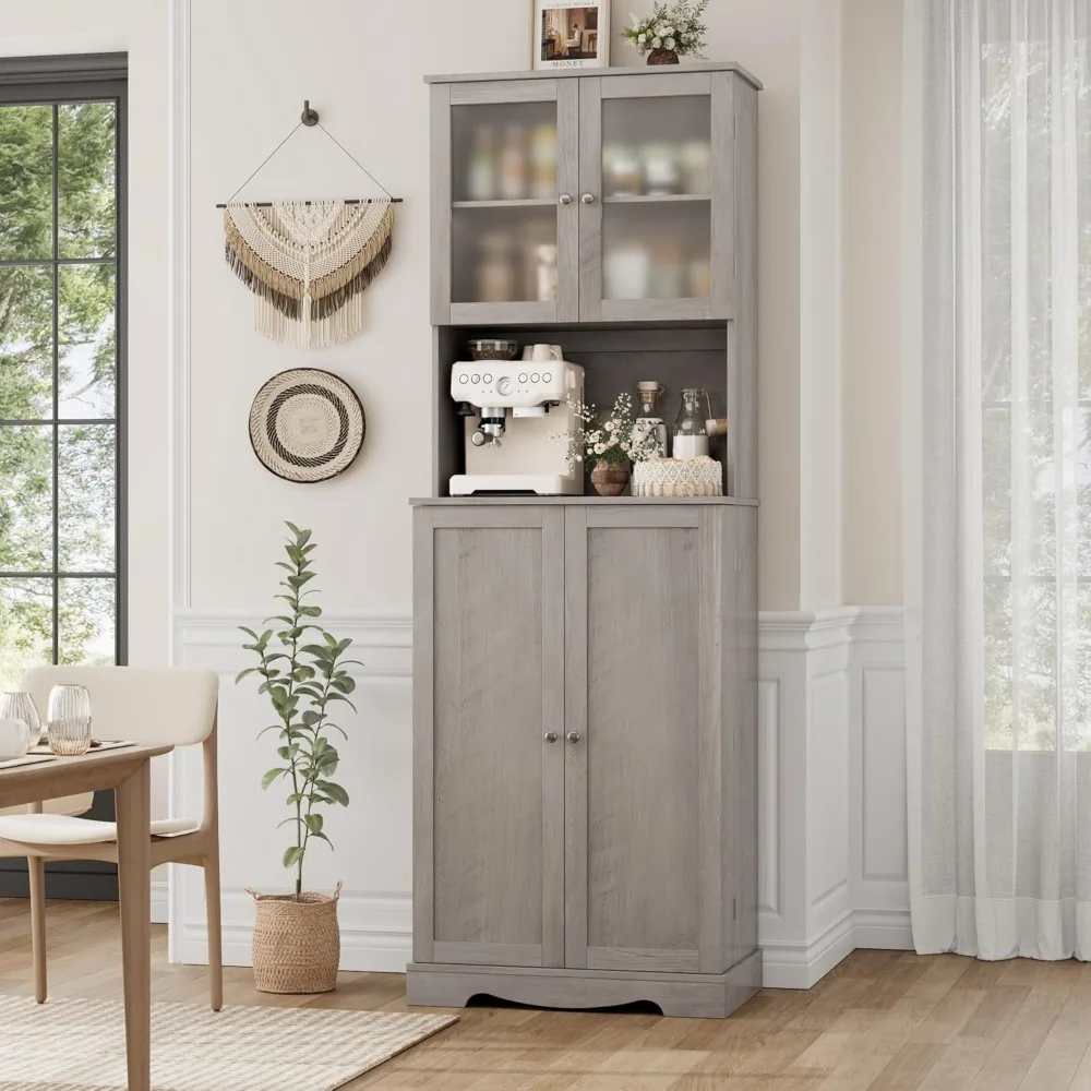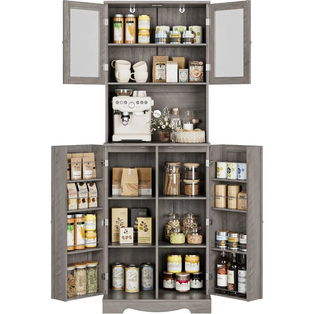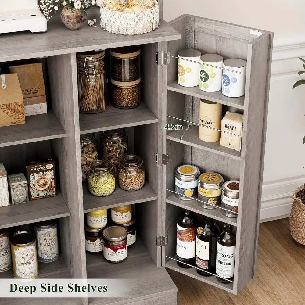 - Upgrade Your Kitchen Storage: Boasting middle open countertop, eight shelves within two cabinets as well as eight side rack along the interior doors, this tall pantry cabinet brings classified storage space to keep microwave, toaster, coffee maker, tableware or other foodstuff accessible and meticulously organized