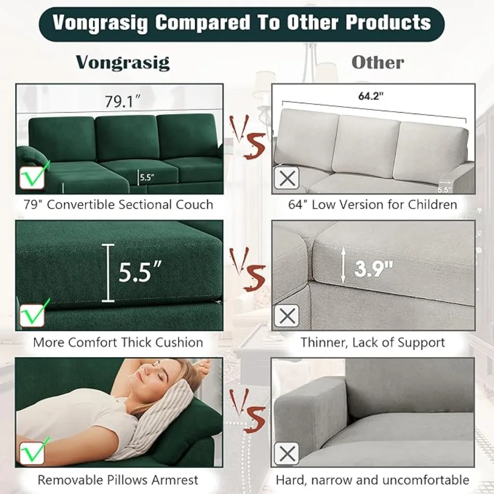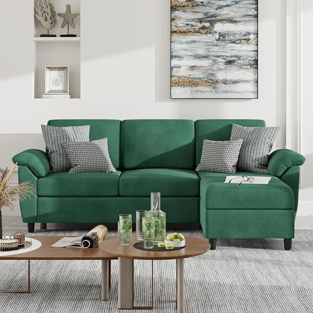 - Comfortable Sectional Sofa: The sofa is made of modern linen fabric with a hardwood frame as the basic structure. The linen fabric is comfortable and not easy to pilling, fading. Soft cushions and a reinforced back, eases the rebound, providing strong comfort.