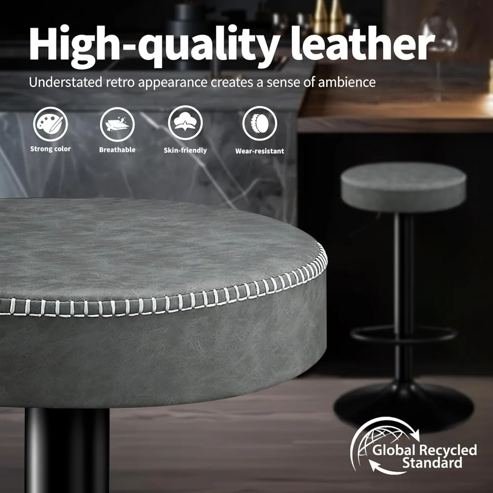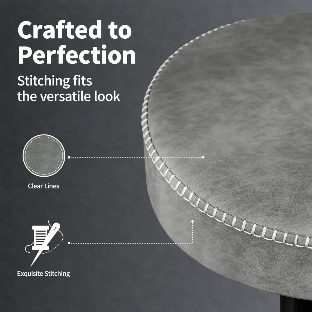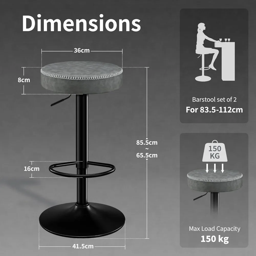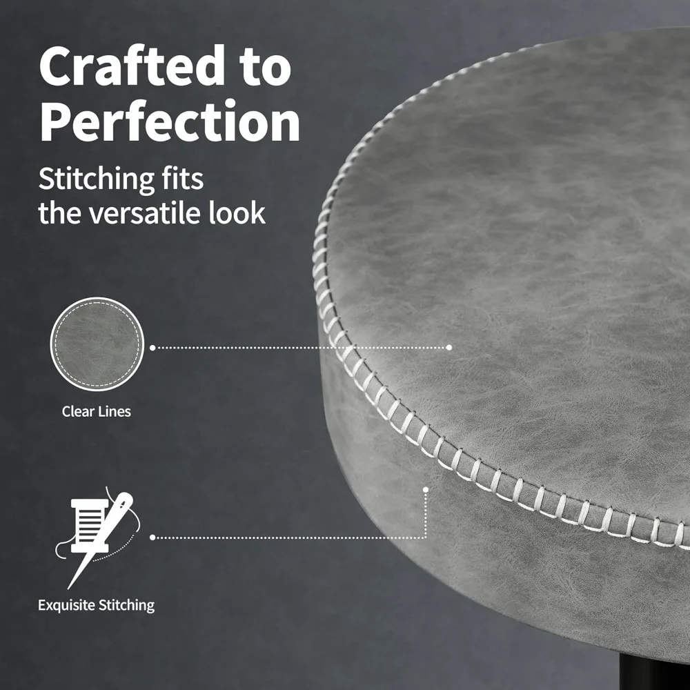 - 360° Swivel & Adjustable Height: The bar stools offer 360-degree rotation for easy turning and adjustable seat height from 25.7" to 33.6" using the lift lever. The backless design makes storage under counters or tables simple and space-efficient.