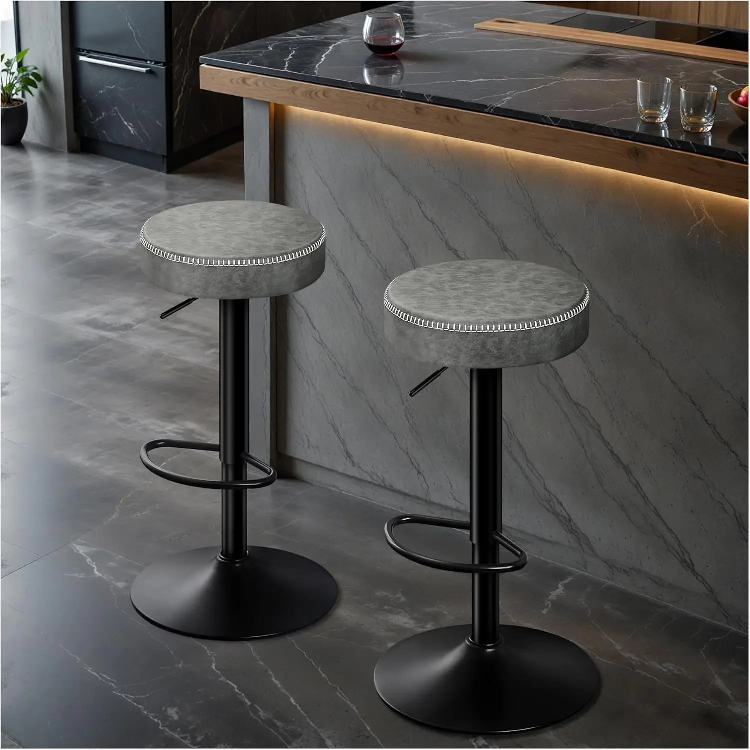 Adjustable Bar Stools Set of 2 Backless Kitchen Barstools with Round Seat 360°Swivel Counter Height Bar Stools Modern Microfiber