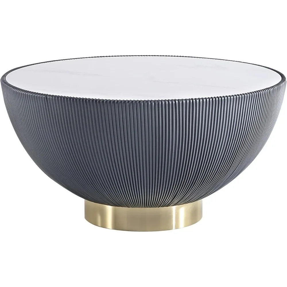 - AESTHETIC APPEAL: Bring a touch of modern elegance to any space with our modern coffee table, showcasing elegant ceramic marble tabletops, unique pleated leatherette details & a modern round gold base