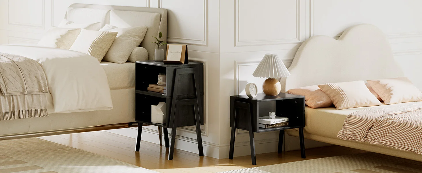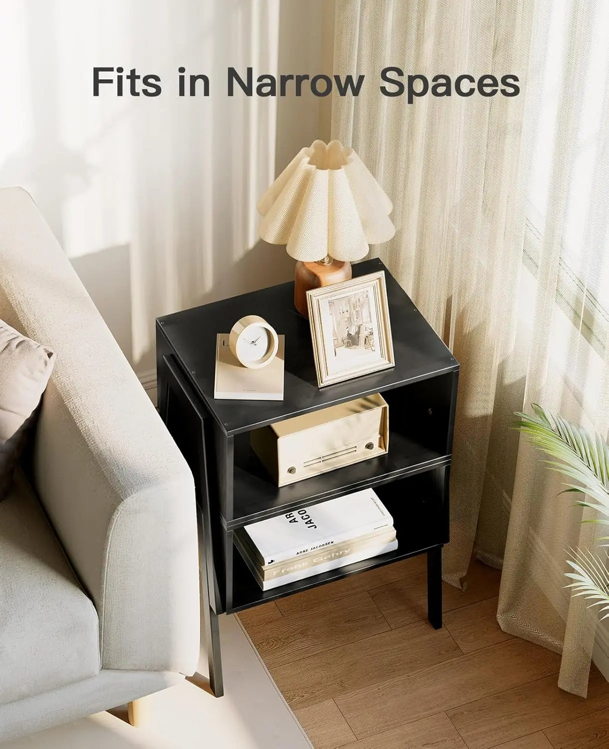 1. Stack Your Style: This bedside table set includes two stackable side tables that can be arranged together or separately to maximize your living space. Stack them together to create a 25.3\u2033 tall table with 3 levels of storage with easy access to the open shelving.