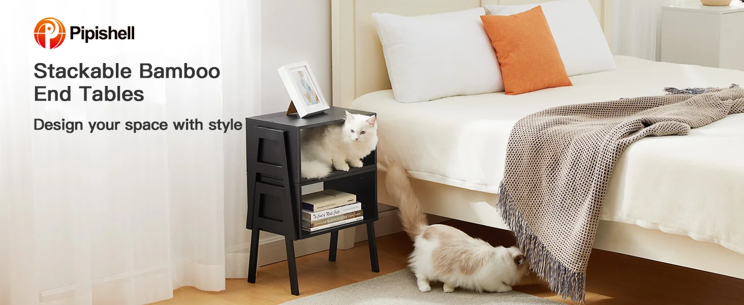 2. Premium Bamboo Wood: Crafted from high-quality bamboo, these Pipishell nightstands are exceptionally sturdy to hold up to 22 lbs each. Bamboo wood is a sustainable material that provides both strength and durability for long-lasting use.