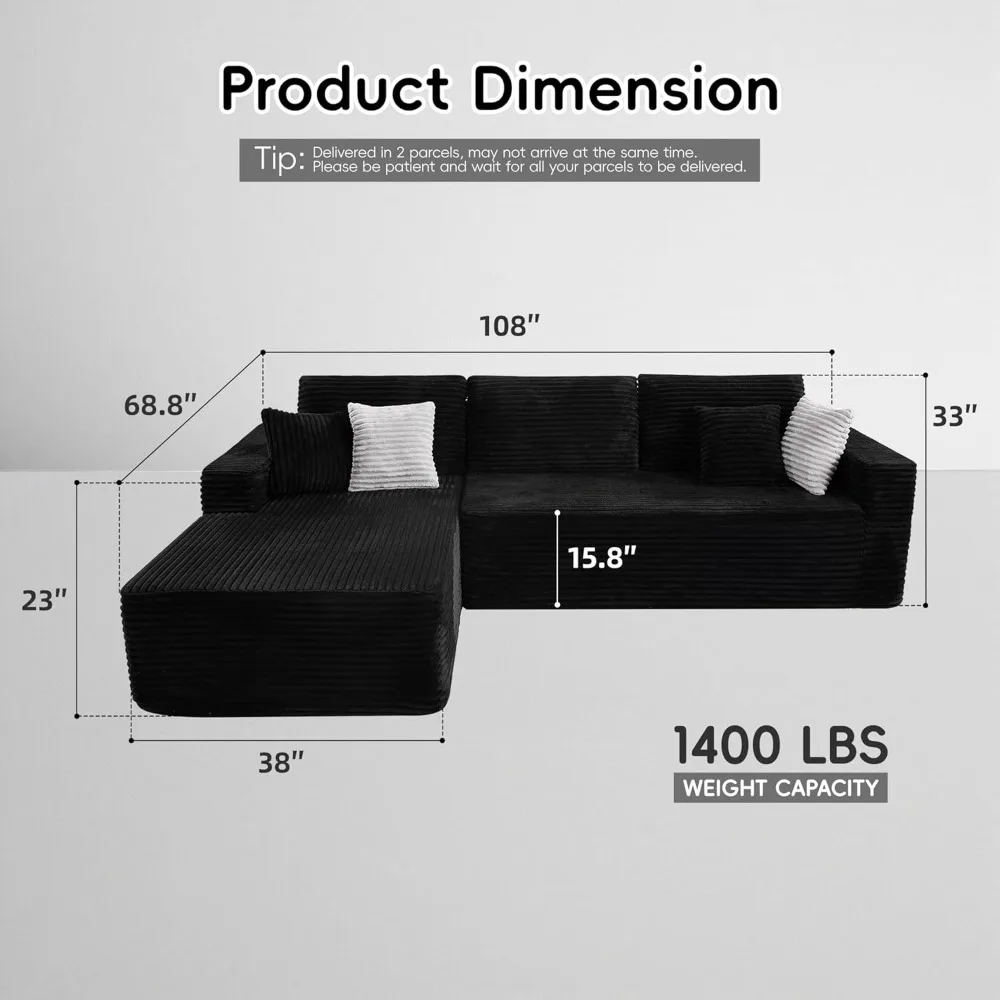 Boneless Couches for Living Room, Modular Sectional Sofa with Oversized Chaise, L-Shape Cloud Couch with Deep Seat, High-Density