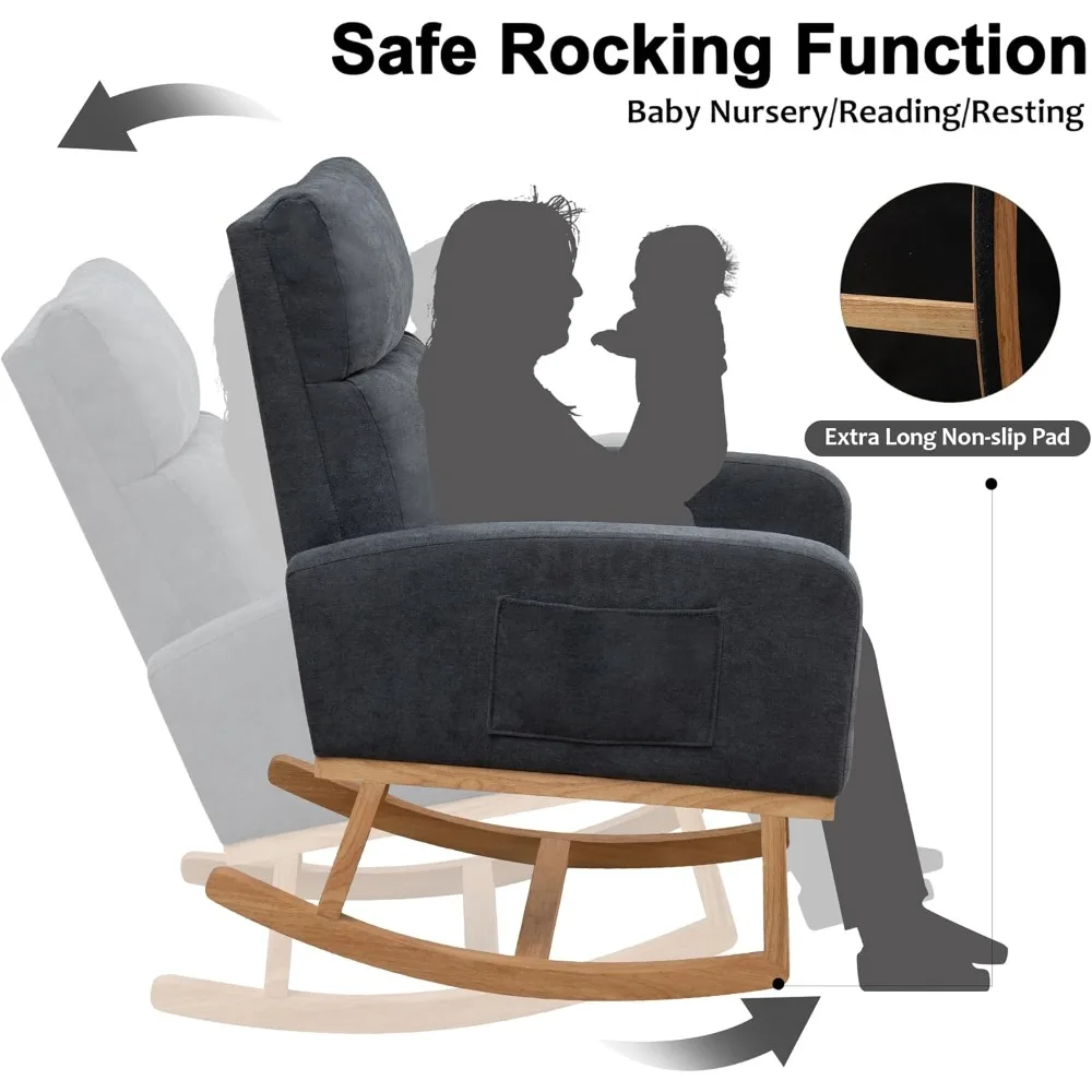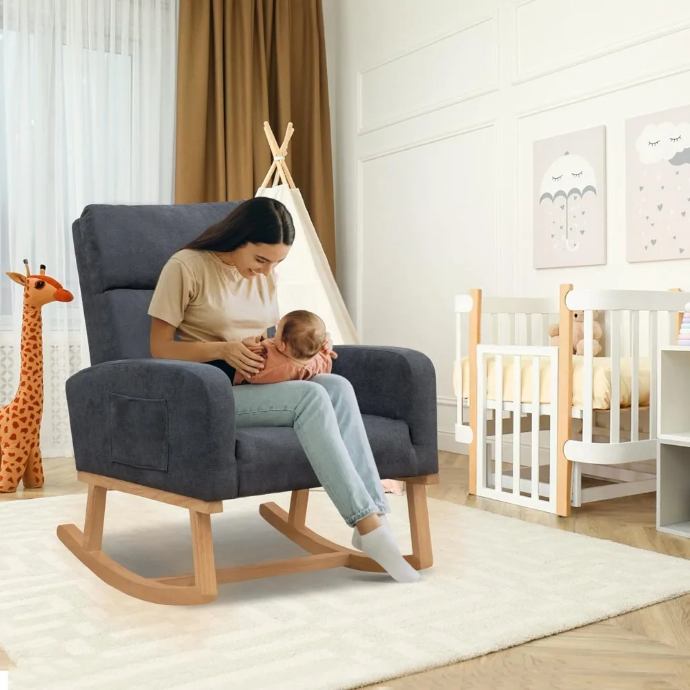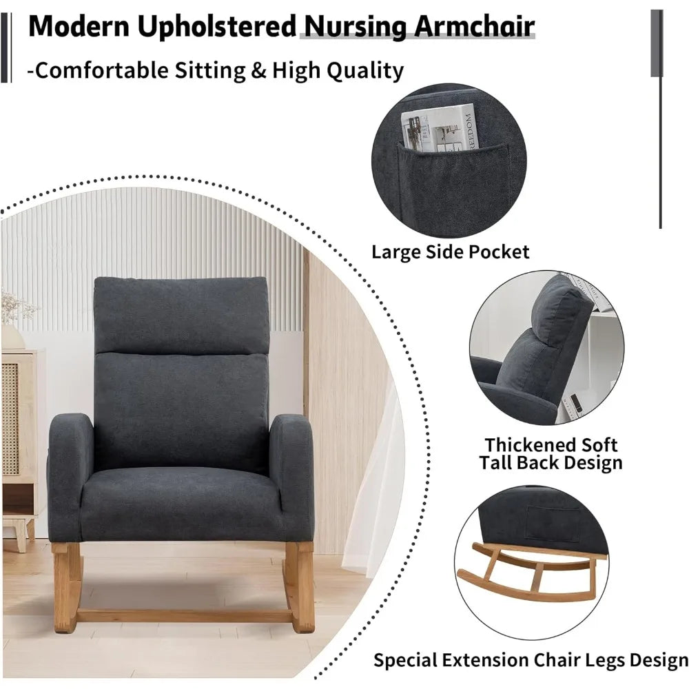 Contemporary Upholstered Glider Rocking Chair for Nurseries with High Backrest Support for Moms