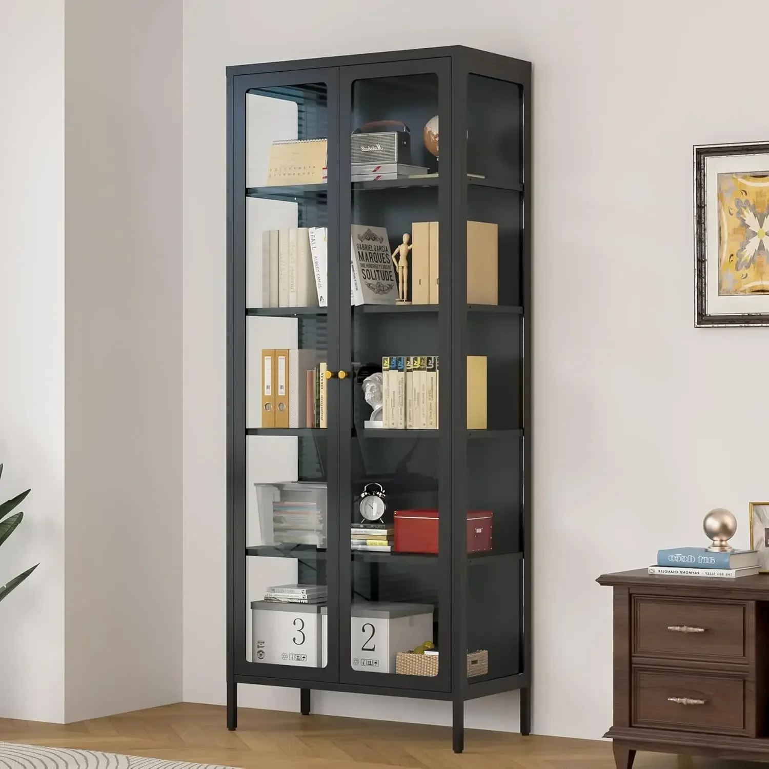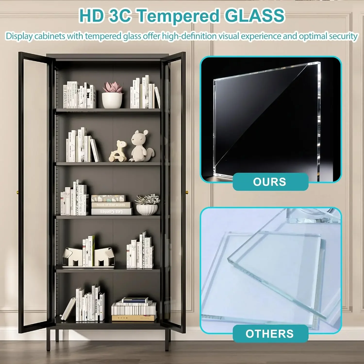 【Multi-Angle Display】Boasting a 3-sided high-definition glass design, this lighted glass display cabinet offers unobstructed views of your treasured collection from various angles. Glass can reflect light, enhancing brightness and appeal, creating an open and luminous display environment that optimizes the showcase of your items.