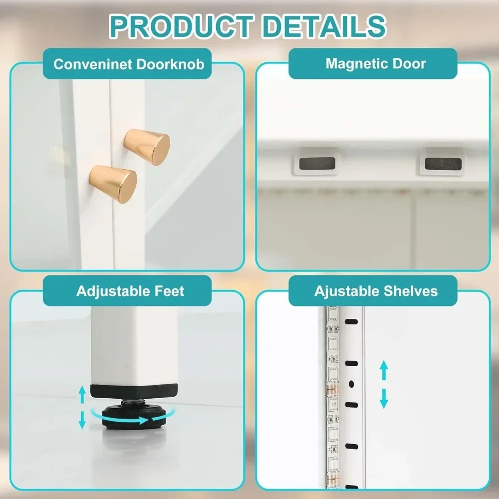 【12 Colors RGB Lights】Enhancing your collectibles with flair, the display cabinet with glass doors features an RGB light strip with 12 color options. The convenient remote control allows you to effortlessly switch between colors, flash/fade modes, and brightness levels, creating a stunning display effect that brings your collection to life with a museum-like ambiance.