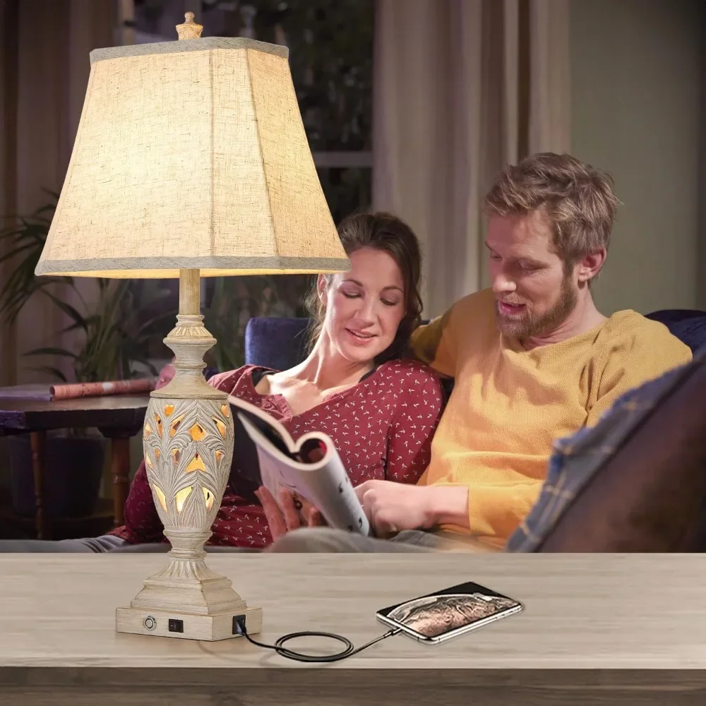 Customizable-29.5"H Touch Control Traditional Table Lamp Set Of 2,Vintage Bedside Lamp Nightstand Lamps With Dual USB Ports,3-Wa