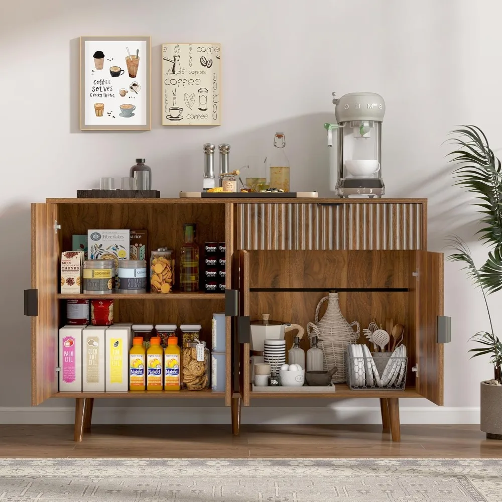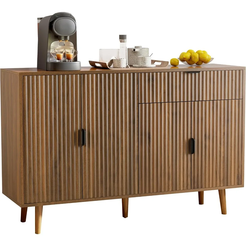 Fluted Buffet Cabinet with Storage, Modern Storage Cabinet with Doors, Large Wood Buffet Sideboards for Kitchen Living Room