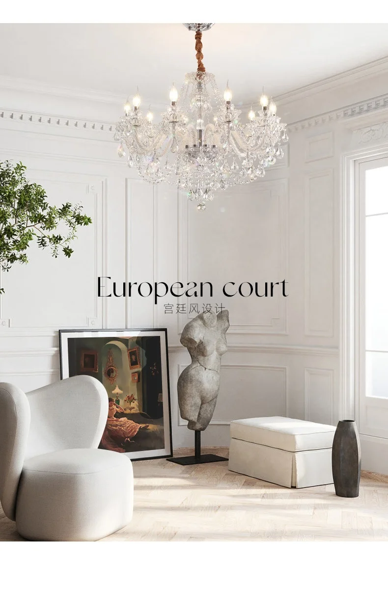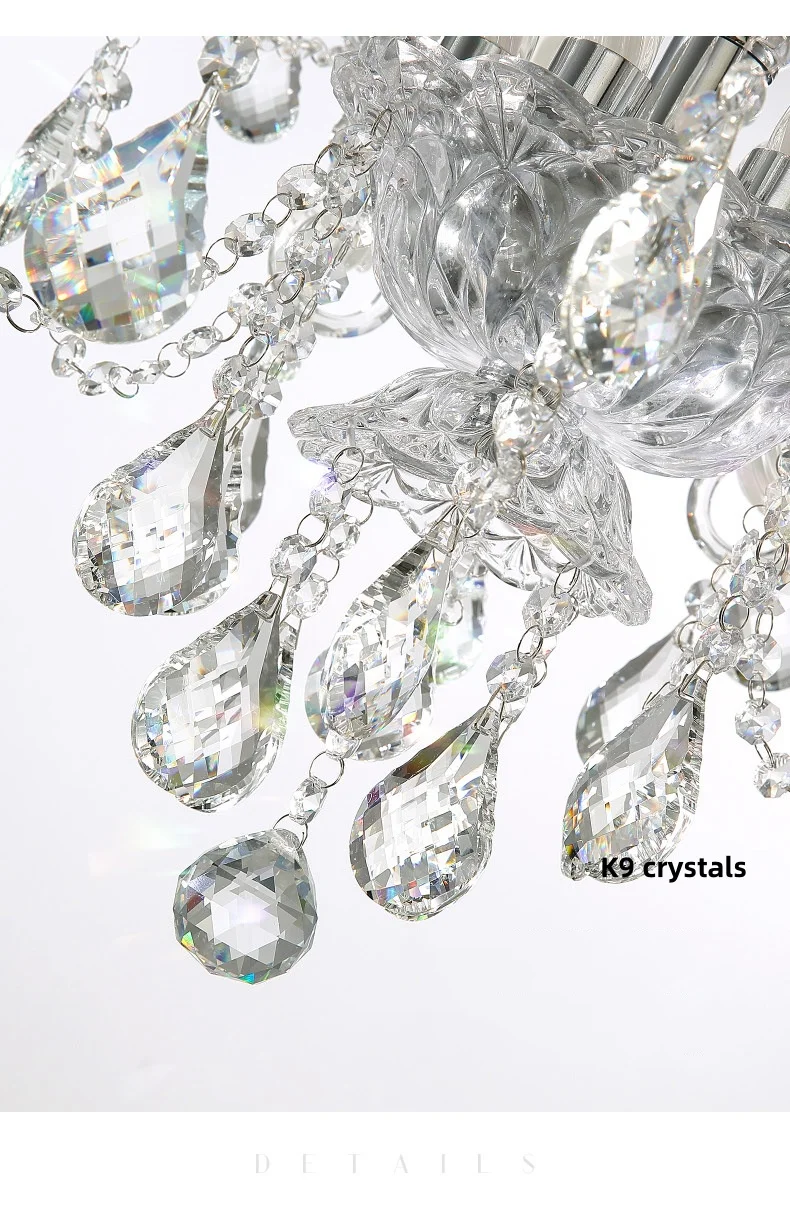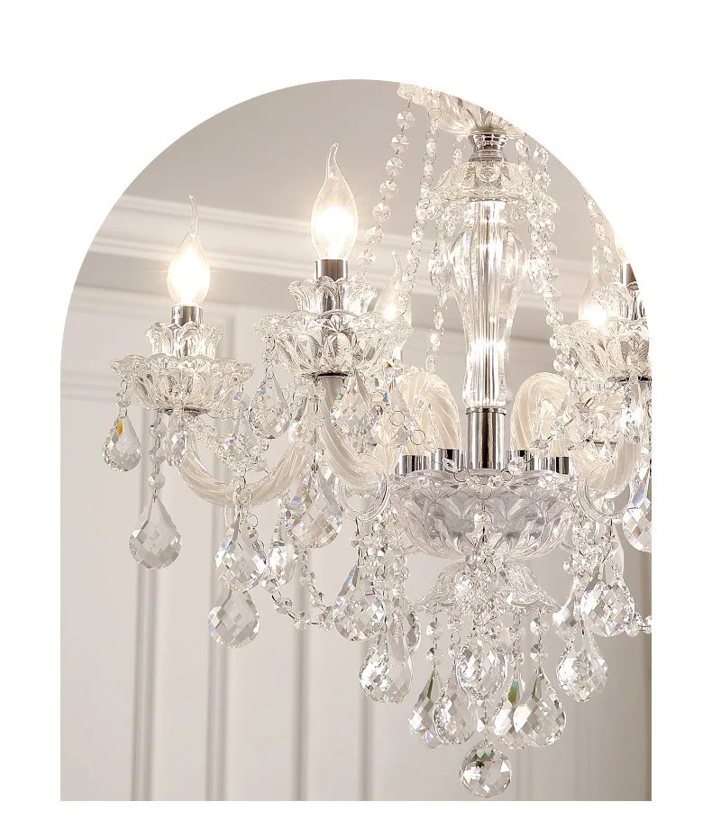 French Lustre Crystal E14 Chandelier Living Room Decor White Glass Pendant Lights Led Ceiling Chandelier For Bedroom Led Lampara