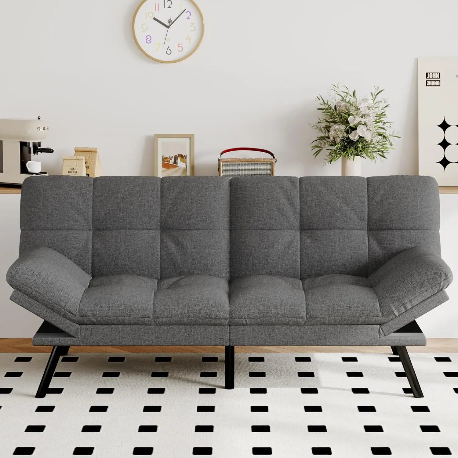 【Multi-Functional Convertible Design】- Effortlessly transform this 71" sofa into a bed with split-back technology! Featuring 3 adjustable backrest angles (120°, 160°, 180°) and 4 customizable armrest positions (0°, 20°, 50°, 75°), adapt it for lounging, reading, or full reclining. Perfect as a sofa by day and a spacious sleeper bed by night—ideal for guests, movie nights, or compact living spaces. 【Ultimate Comfort with Premium Memory Foam】- Sink into 3-inch thick CertiPUR-US certified memory foam cushioning that evenly distributes pressure for unparalleled support. No need for extra pillows—enjoy deep sleep or extended lounging with ergonomic comfort for your back, neck, and legs. 【Durable & Space-Saving Construction】- Built with sturdy wooden frame, 6 reinforced metal legs, and scratch-resistant faux leather, this sofa bed supports up to 600 lbs. Compact dimensions (71"L x 33"W x 31.5"H as sofa; 71"L x 42"W x 16"H as bed) maximize space efficiency in apartments, dorms, offices, or RVs. 【Modern Style, Easy Maintenance】- Upgrade your décor with a sleek mid-century design featuring luxurious brown faux leather and chrome-plated legs. Spills? Simply wipe clean with a damp cloth—no stains, no fuss. 【Quick 15-Minute Assembly】- Assemble in just 15 minutes with included tools and clear instructions! All tools and parts are included in the box!Hidden legs and a zippered accessory pocket ensure a hassle-free setup.