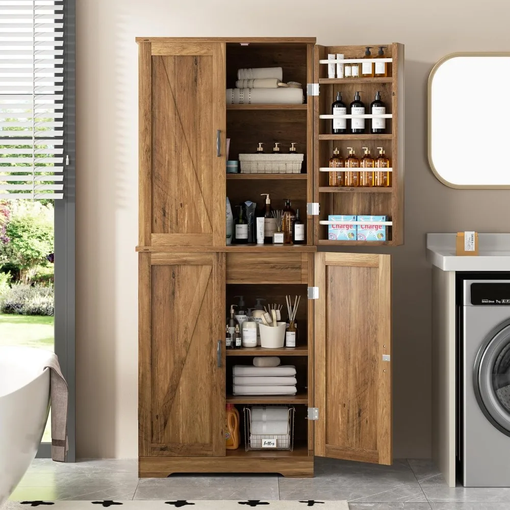 - Not Only Being A Pantry: Apart from being a kitchen pantry to serve as a atorage solution for dishes and cookware. It also makes an excellent sideboard for glassware, or be used to store your books or decorative items in the living room. While in the bathroom, it provides a stylish way to organize toiletries, towels, and other essentials, helping to maintain a clutter-free space