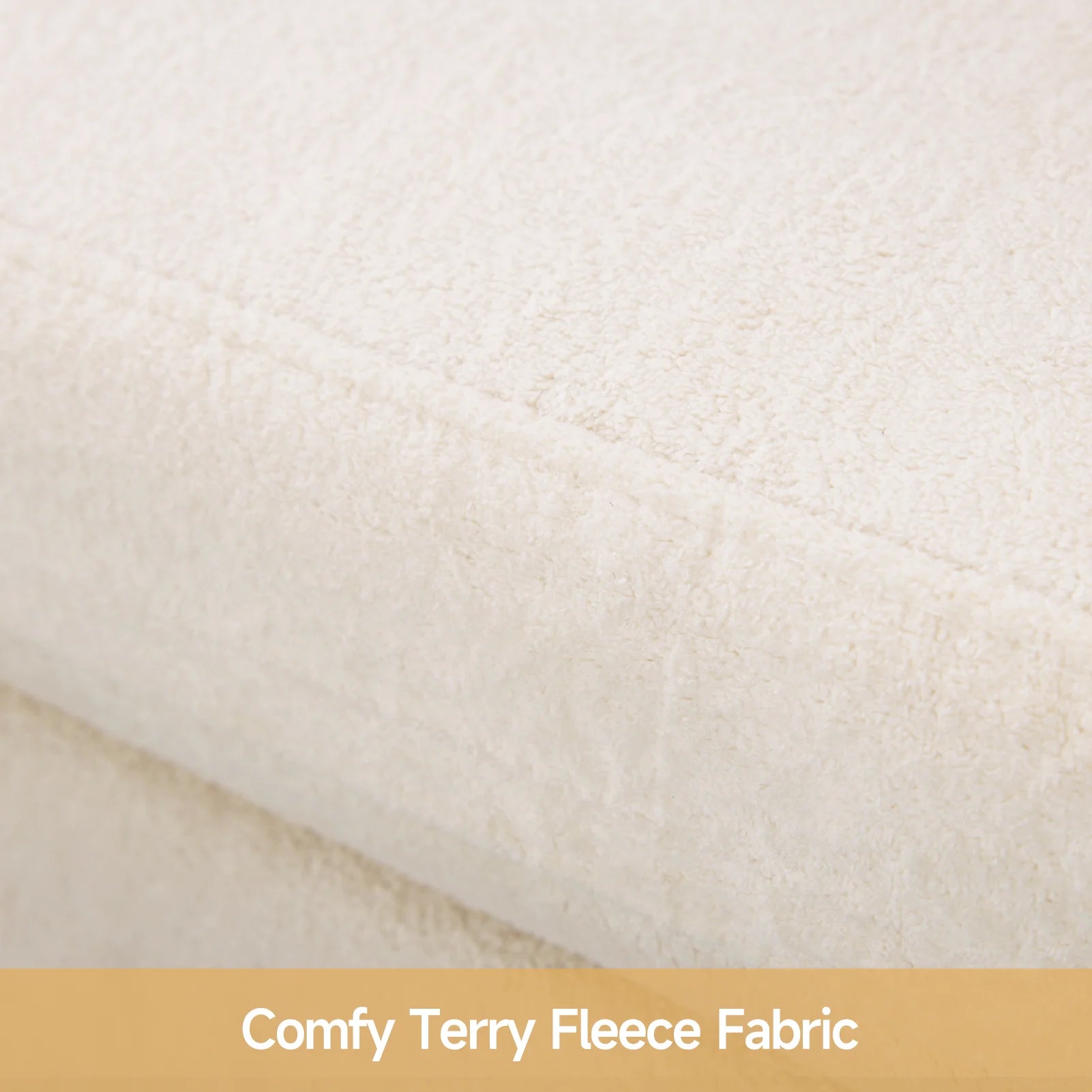【Stain-Resistant Fabric】 The pull out couch features durable terry fleece fabric that repels water, oil, and stains. The sleeper sofa’s surface resists debris, ensuring easy cleaning and long-lasting freshness with minimal effort.