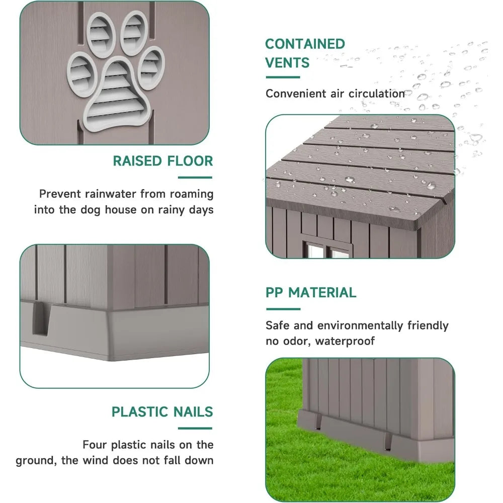 - All-Weather Protection: Built to withstand rain, wind, and sun, this weatherproof resin dog house provides a secure and dry shelter, ensuring your pets stay protected no matter the weather