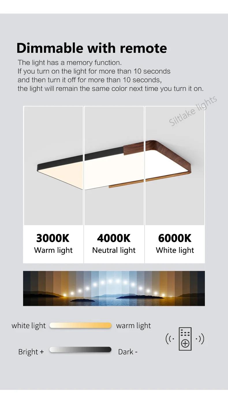 Color Tempeature: Warm light(2700K-3500K) No remote,Neutral light(4000k-4500k) No remote,Cool light(6000K-6500K) No remote,Dimmable with remote