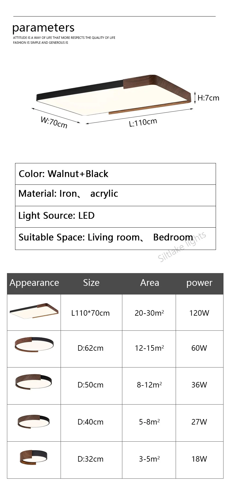 Living room ceiling lamp Italian LED simple modern walnut color hall main lights restaurant study lamps master bedroom lamp