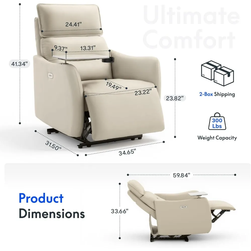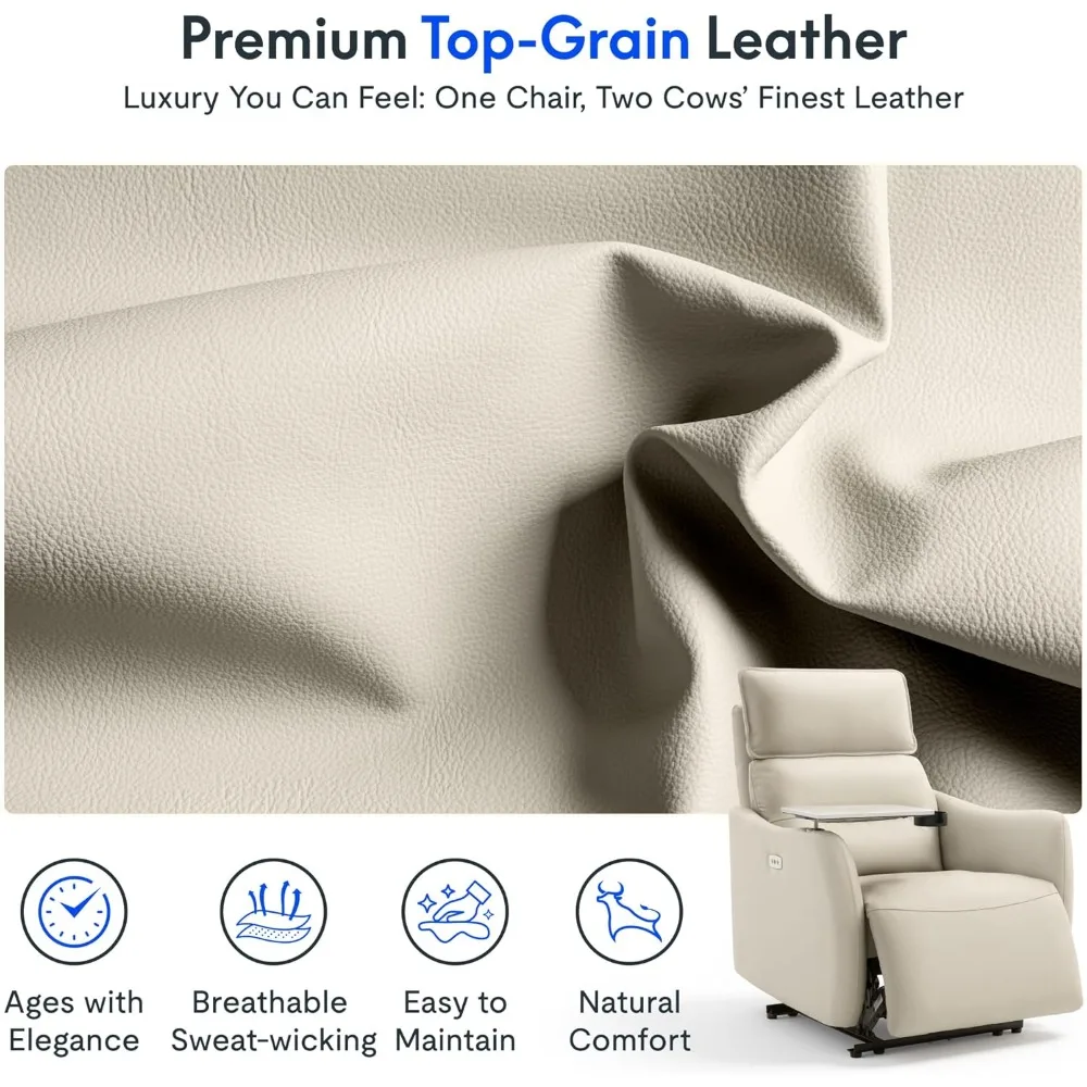 Lune Genuine Leather Power Recliner Chair with Tray Table & Adjustable Headrest, Real Leather Electric Recliner