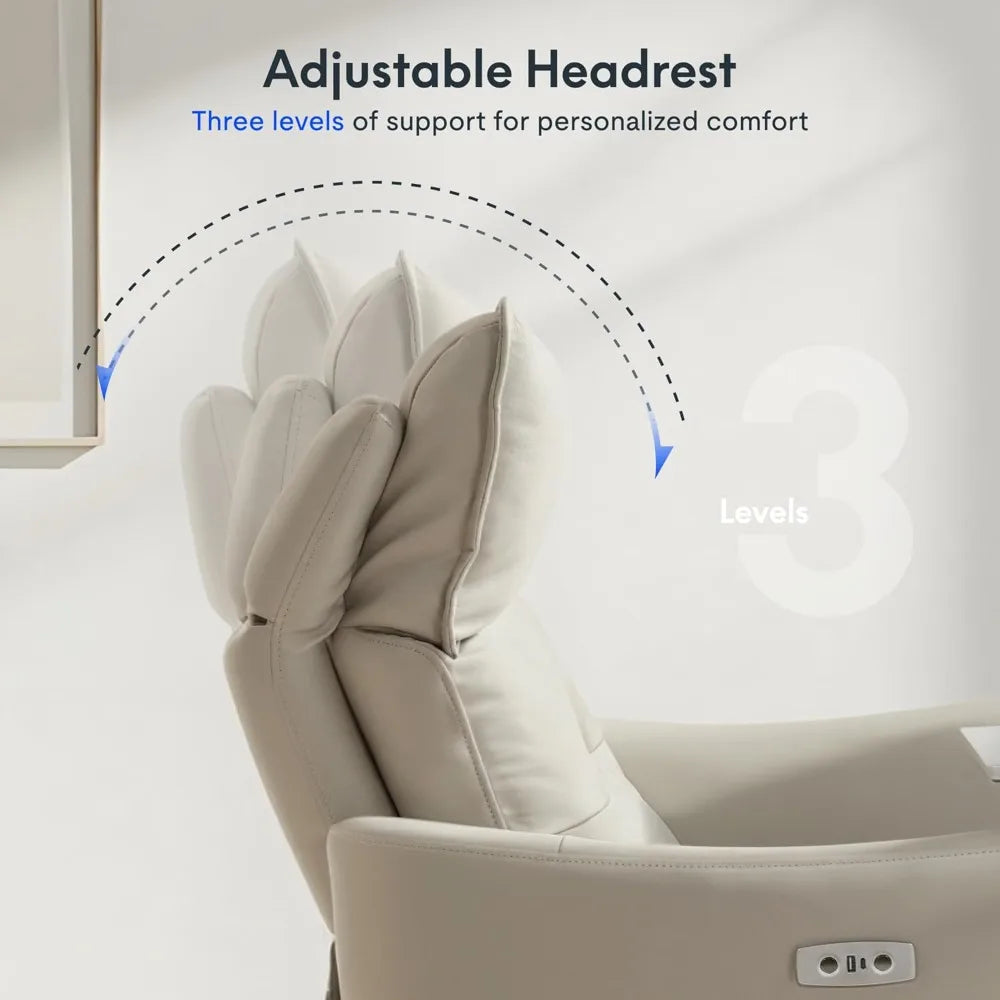 - 【Electric Recliner with Adjustable Headrest】– Find your perfect angle with smooth electric reclining and a three-level adjustable headrest. Whether you’re watching TV, reading, or taking an afternoon nap, the quiet motor and ergonomic design ensure personalized comfort every time you sit.