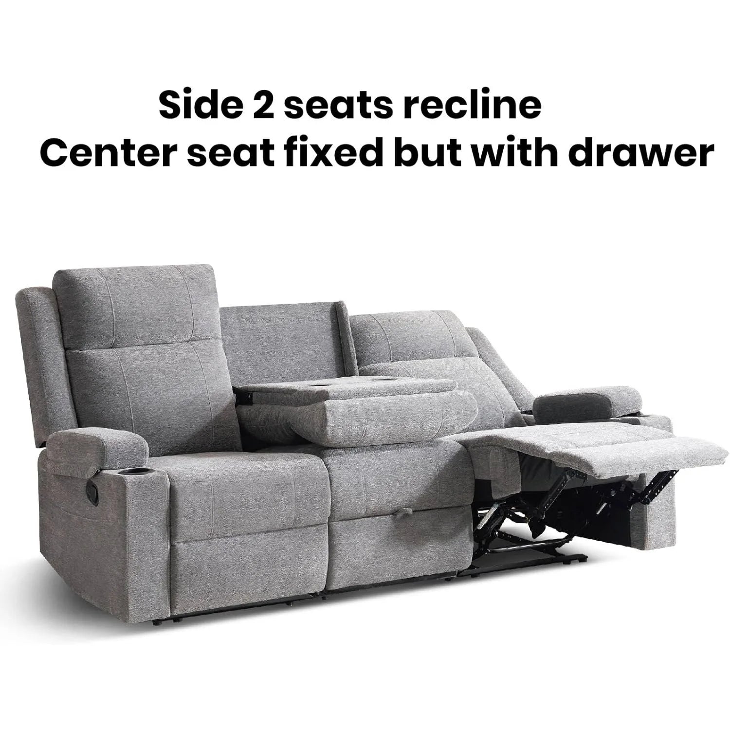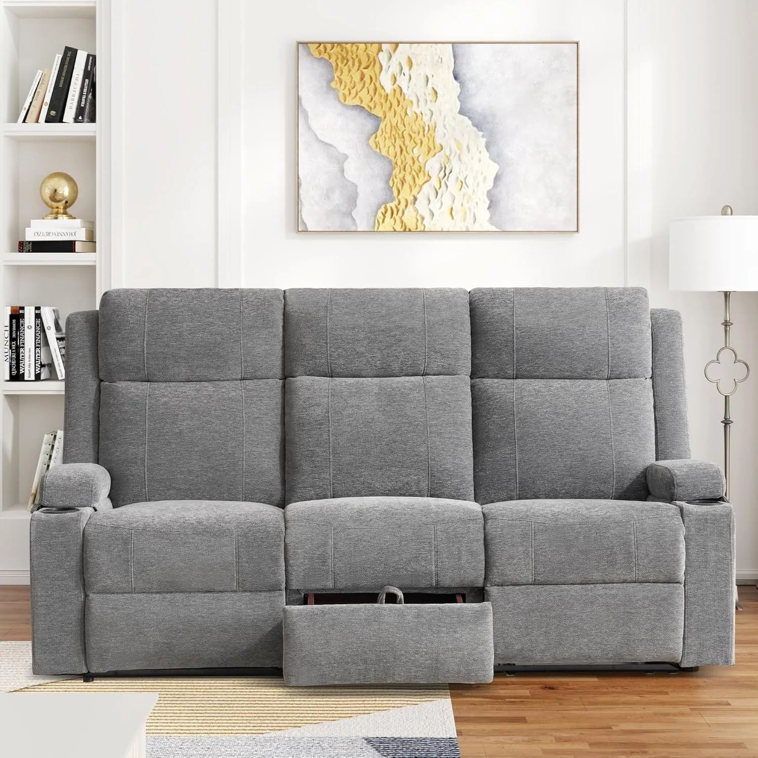 Manual Reclining Sofa with Storage Drawer, 3 Seat Wall Hugger Recliner Couch with Cup Holders, Side Pockets