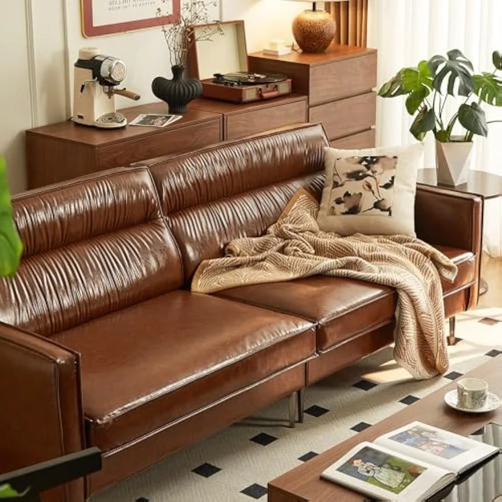 - 【Breathable and Skin-Friendly Oil Wax Leather】 Our mid-century sofa is crafted from the finest quality oil wax leather, offering a vintage sheen and buttery-soft feel. Each piece of leather is meticulously processed to reveal natural variations in color, wrinkles, and creases, providing a unique and luxurious texture.