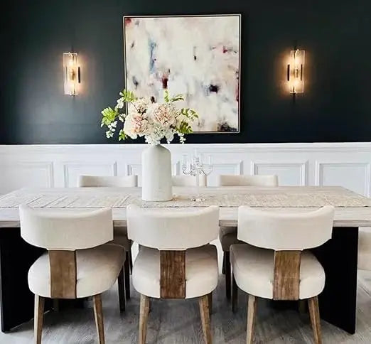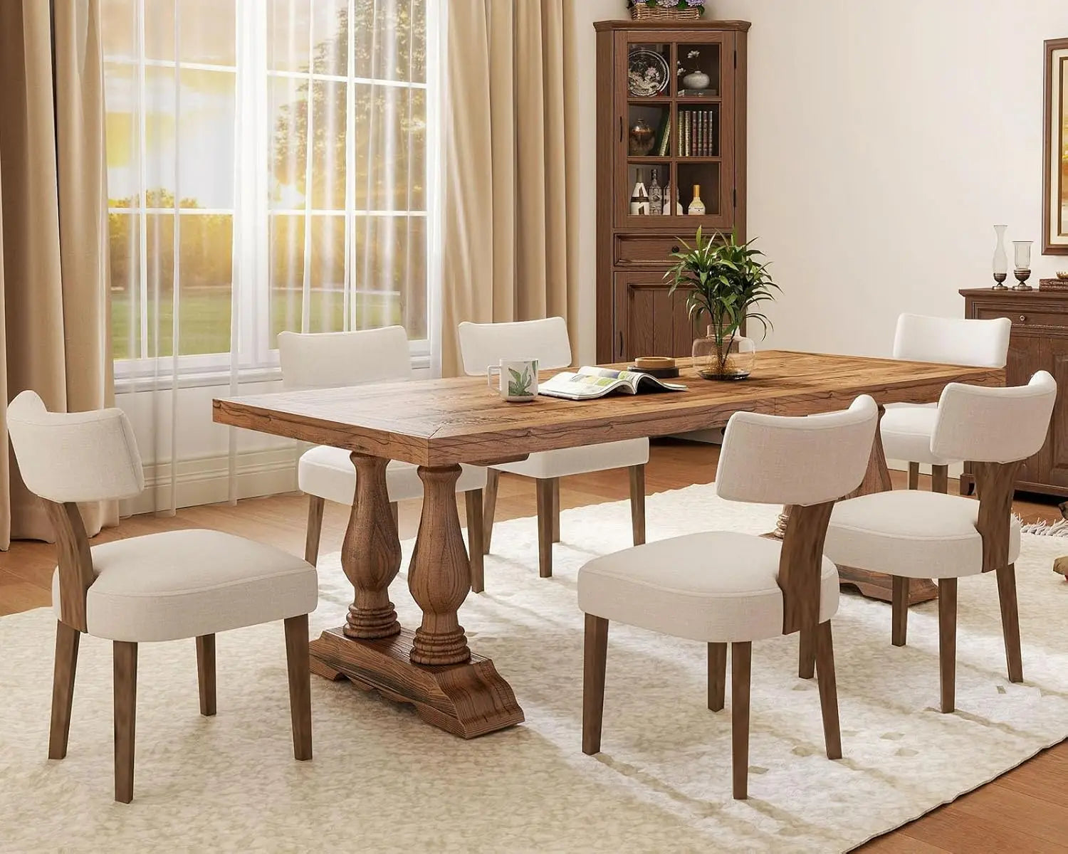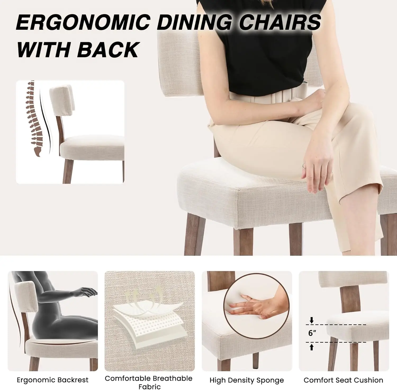 Mid Century Modern Dining Chairs Set of 6, Farmhouse Linen Fabric Upholstered Accent Curved Backrest Kitchen Chairs, with Ha