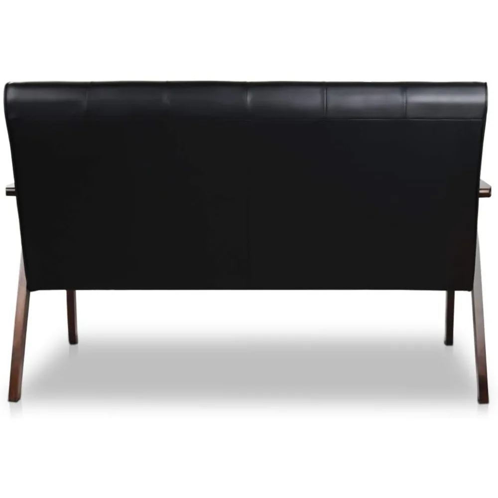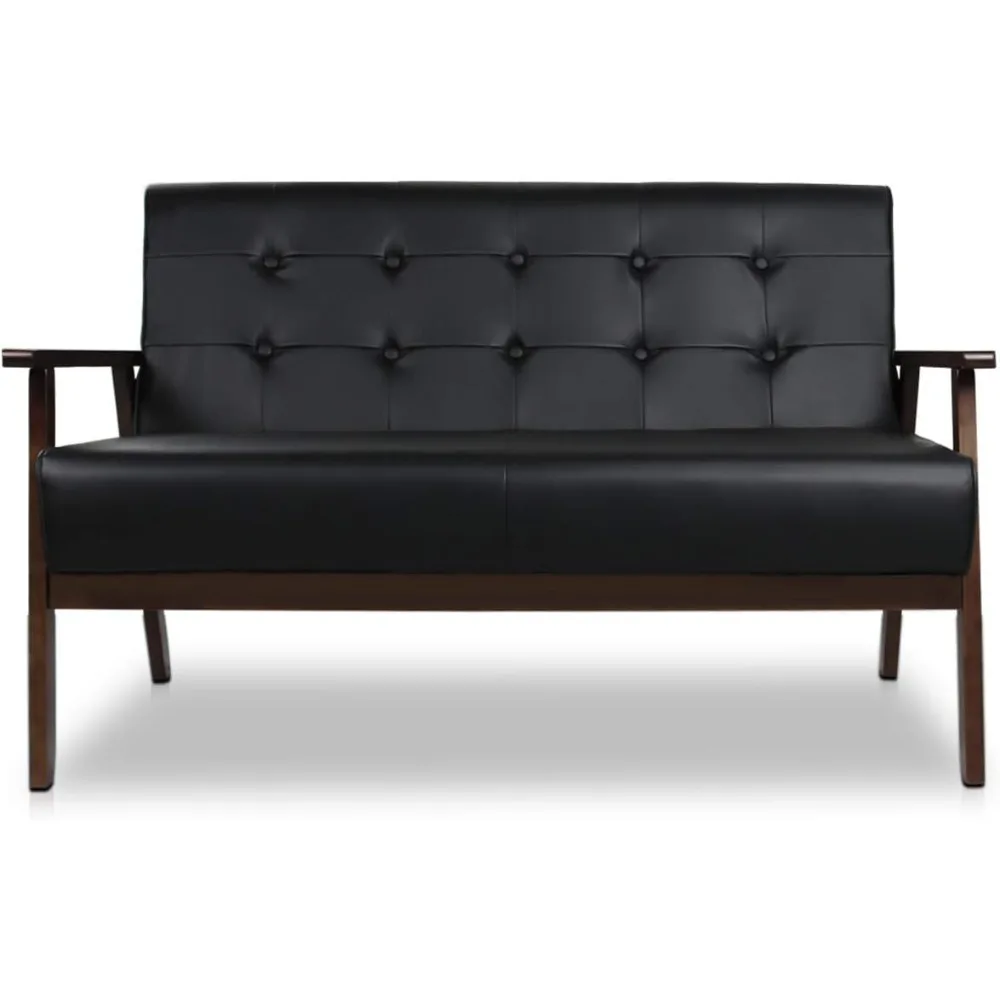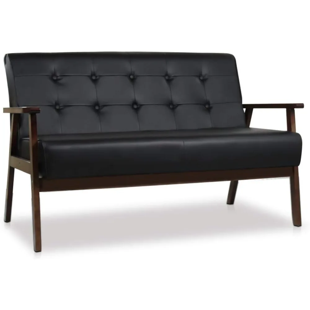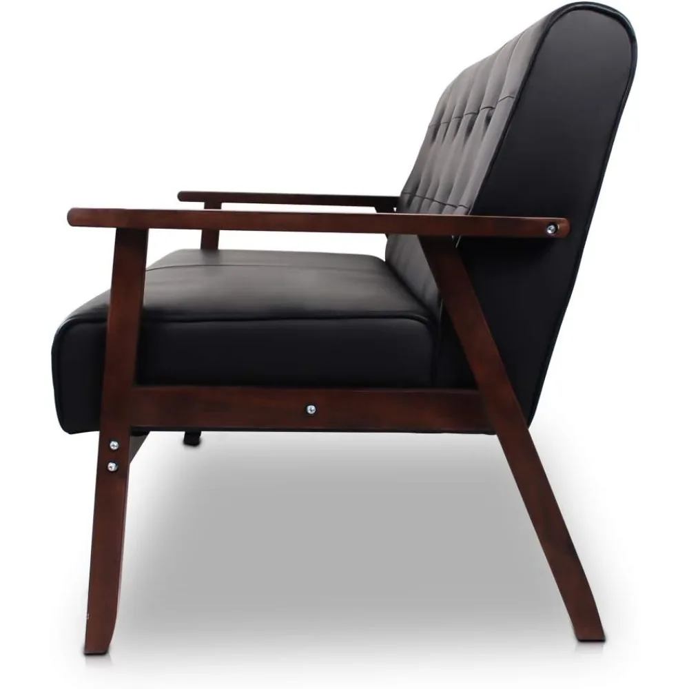Mid-Century Modern Solid Loveseat Sofa Upholstered Faux Leather Couch 2-Seat Wood Armchair Living Room/Outdoor Lounge