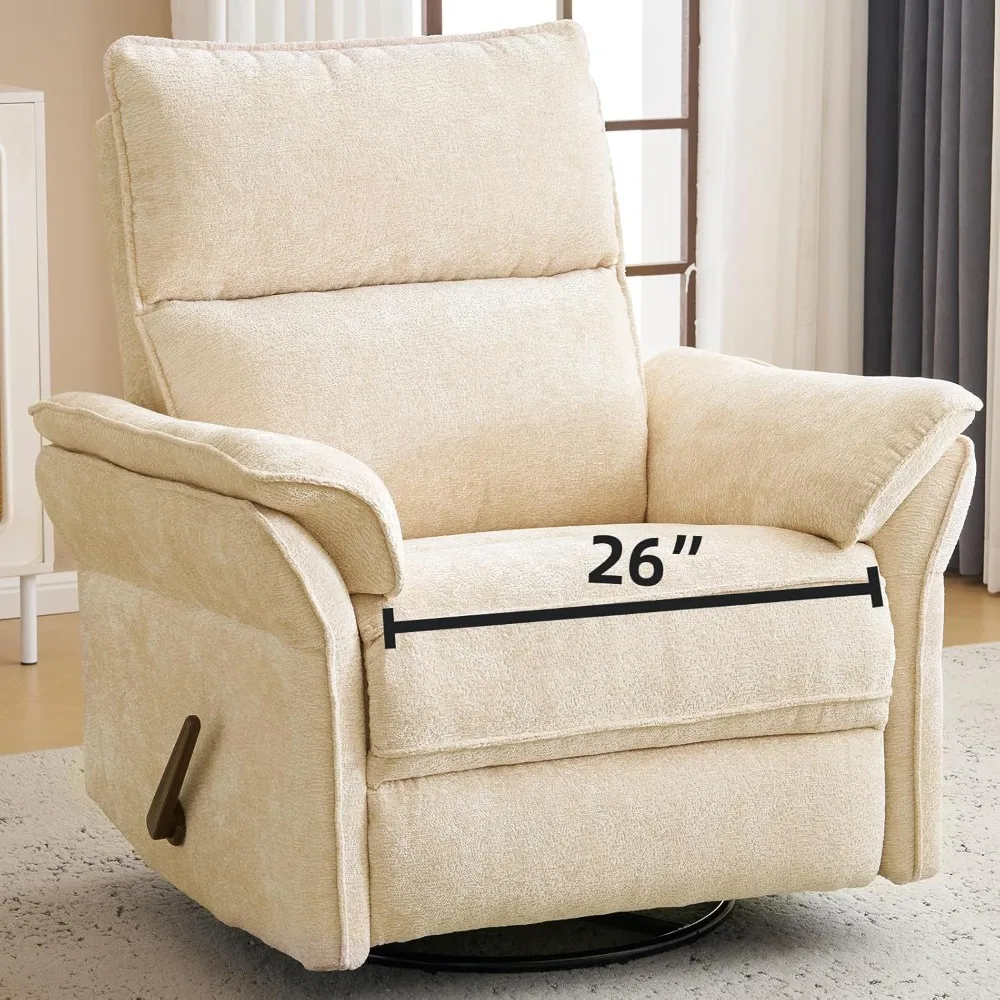 Oversized Recliner Chair, 26" Extra Wide 360° Swivel Rocker Recliner with Adjustable Headrest, Chenille Glider Rocking Nursery