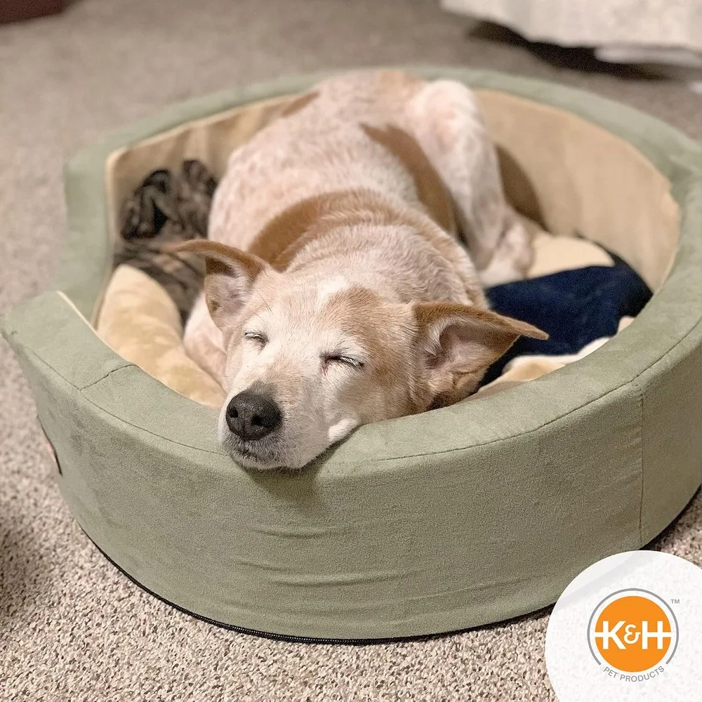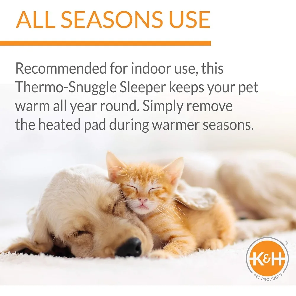 - MACHINE WASHABLE: K&H Thermo-Snuggly Sleeper heated dog bed features a removable cover and pillow for easy wash and care