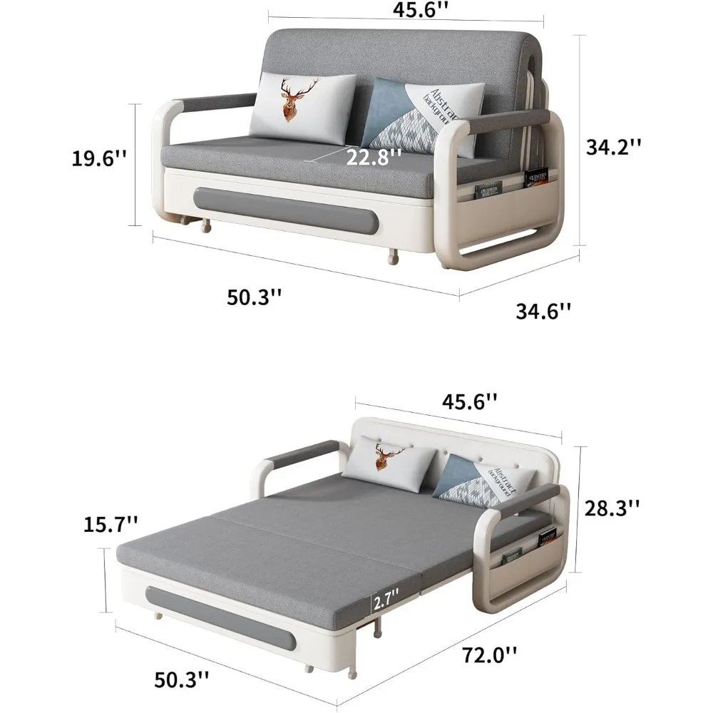 - 【Comfortable Seating】: The cotton-linen fabric cover adds a touch of elegance and comfort, while the removable and washable cushions ensure easy maintenance. Relax in style, knowing your seating is both cozy and clean.The sofa bed features a wheeled design, allowing you to easily open and close it.