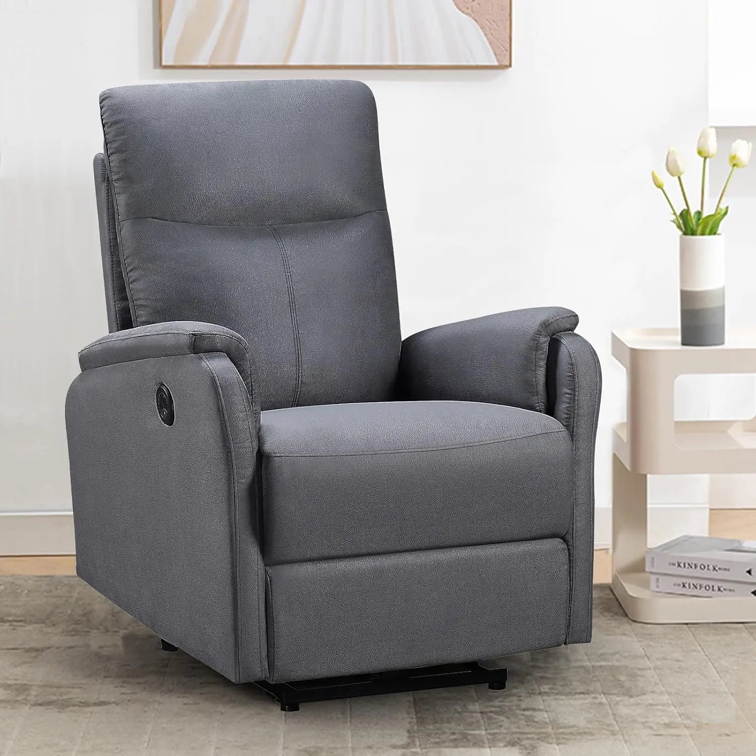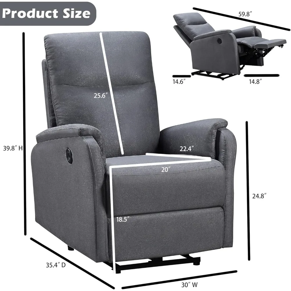 Small Electric Power Recliner, Breathable Leathaire Fabric Reclining Chair, USB Ports, Electric Home Theater Seating